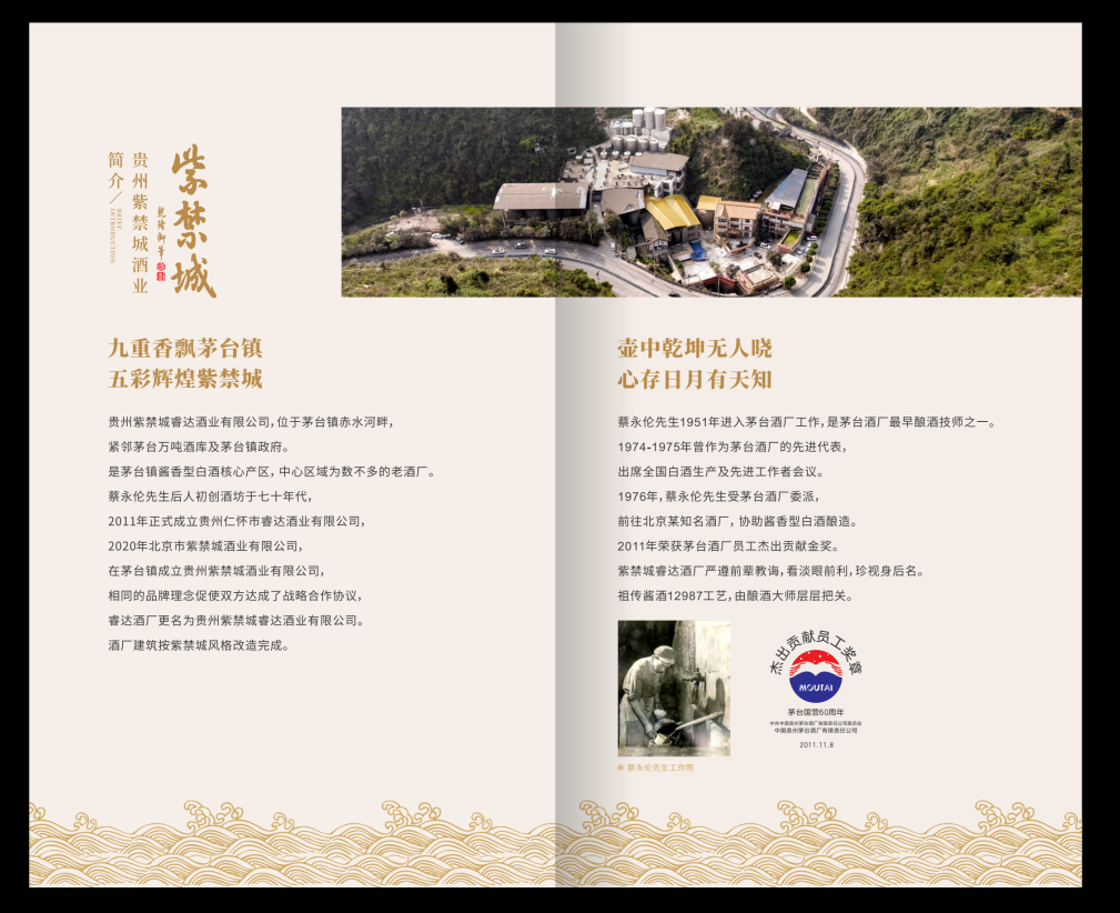 蔡永伦先⽣1951年进⼊茅台酒⼚⼯作,是茅台酒⼚最早酿酒技师之⼀,1974-1975年曾作为茅台酒⼚的先进代表,出席全国⽩酒⽣产及先进⼯作者会议。1976年,蔡永伦先⽣受茅台酒⼚委派,前往北京昌平华都酒⼚, 协助酱⾹型⽩酒酿造。2011年荣获茅台酒⼚员⼯杰出贡献⾦奖。紫禁城睿达酒⼚严遵前辈教诲,看淡眼前利,珍视身后名。祖传酱酒12987⼯艺,由酿酒⼤师层层把关。